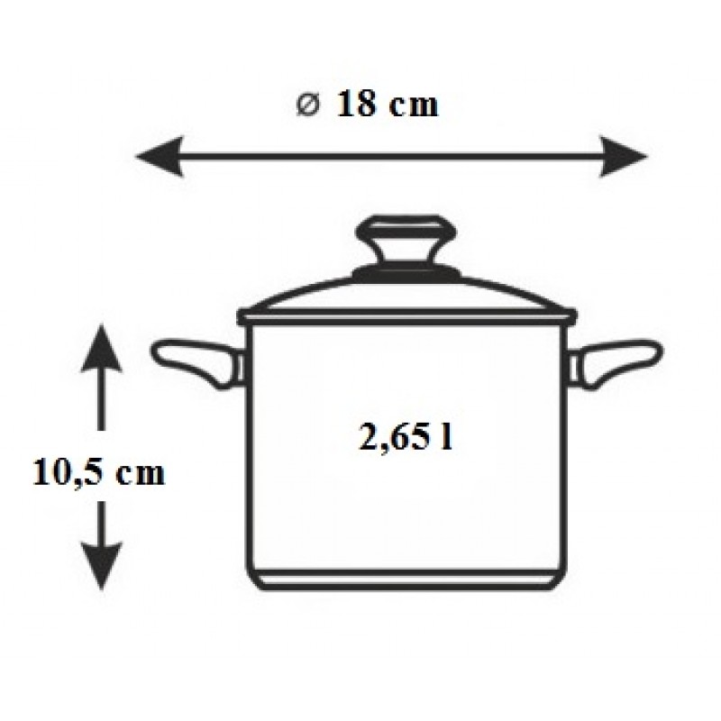 BANQUET Hrniec s pokrievkou 18x10,5cm, objem2,65litru, Cassida New Line 48RW0612H18-ANerezový hrniec 2,65L s pokrievkou, rovný tvar, pokrievky s dierkami pre zlievanie tekutín, na vnútornej strane hrnca mierka objemu, protektor 18/0 pre indukčné varenie, povrchová úprava v kombinácii lesk a mat, rozmery hrnca 18x10,5 cm.