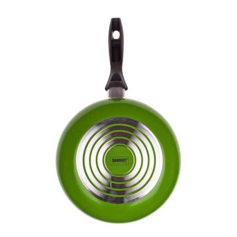 BANQUET Panvica WOK 24 cm zelená Natura Ceramia Verde 40JC24WCCGRHliníková WOK panvica 24x7,3 cm zelená Natura Ceramia Verde s 2-vrstvou keramickou vnútornou povrchovou úpravou ECL vo farbe krémovej, špirálové dno.