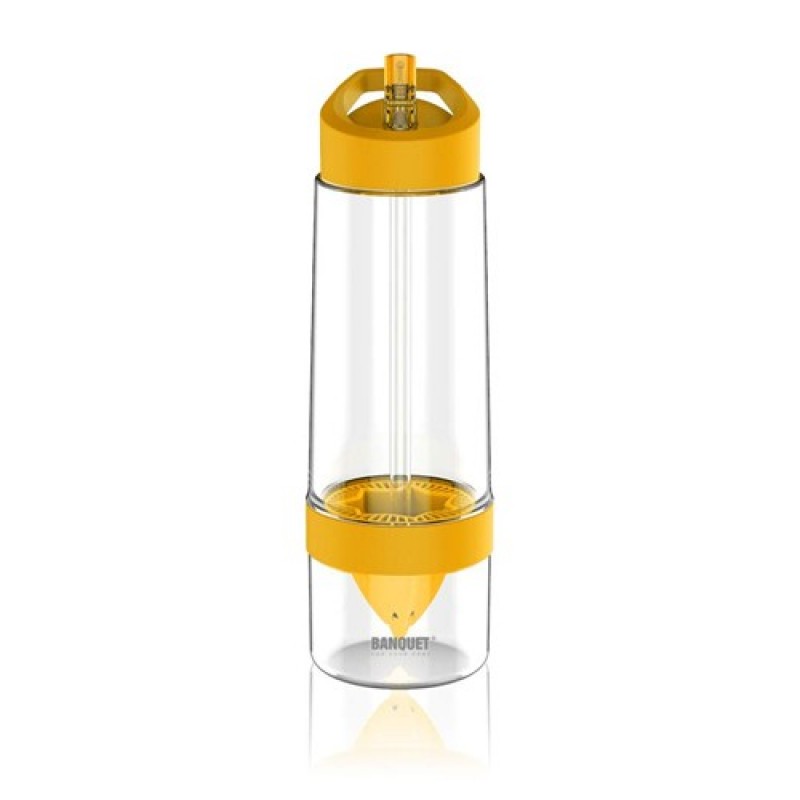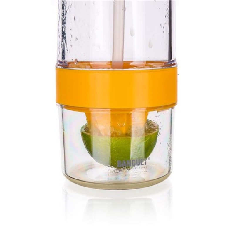 Športová fľaša SQEEZY 650 ml, oranžová je vyrobená z vysoko odolného plastu - TRITAN. Jedná sa o veľmi odolný plast vhodný pre studené aj horúce nápoje. Fľaša je opatrená vodotesným viečkom, ktoré je tiež vyrobené z plastu (PP / AS). Fľaša je vybavená zabudovaným lisom na citrusy.Objem (ml): 650
