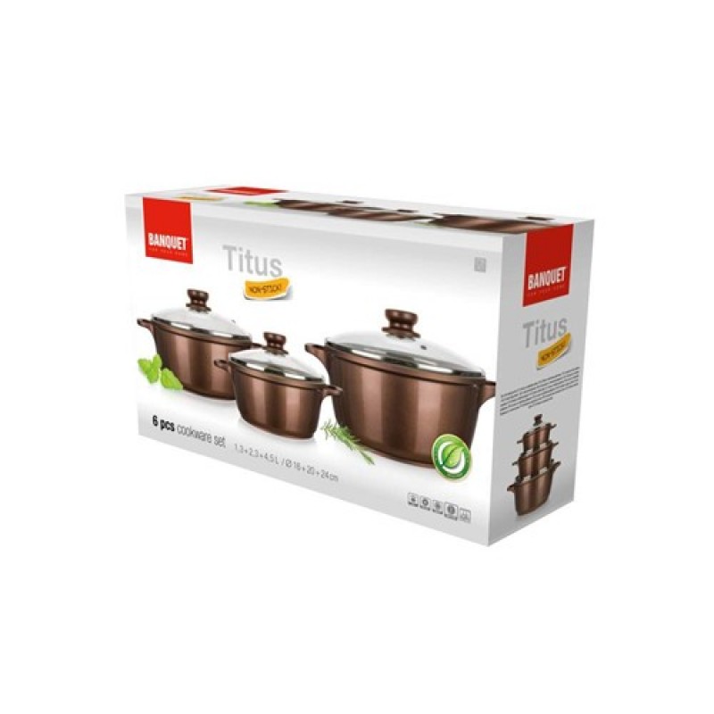 BANQUET TITUS Sada hrncov s nepriľnavým povrchom 3ks, s pokrievkou 40020630
