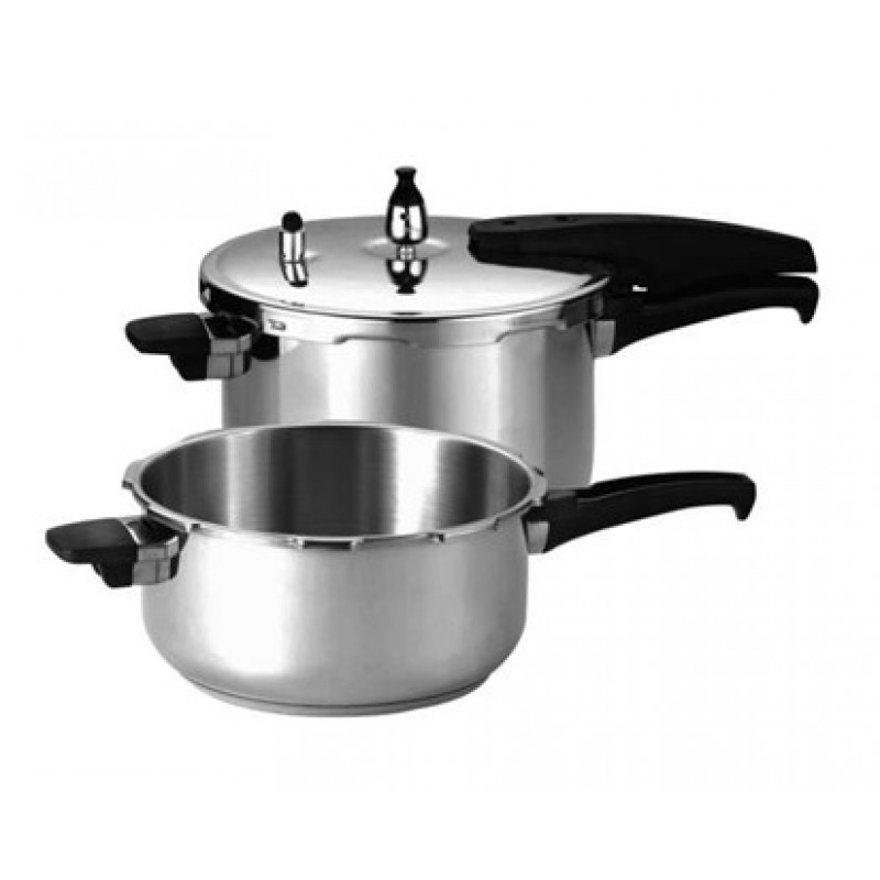 BANQUET Tlakové hrnce 3,5L + 5L ALEGRO 23AS22B35LALSada tlakových nerezových hrncov Alegro 3,5 + 5L, 2 hrnce + 1 pokrievka. Univerzálna pokrievka k tlakovým hrncom má hlavný pracovný ventil, bezpečnostný ventil, poistku proti otvoreniu a silikónové tesnenie. Hrnce sú vhodné na všetky typy varných dosiek vrátane indukcie, majú silné sendvičové dno.