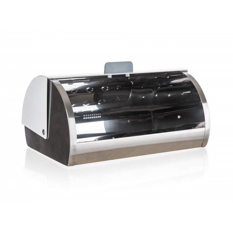 Nerezový chlebník TUBE o rozmere 38,5 x 28 x 18,5 cm slúži na uchovávanie všetkých druhov pečiva. Veko má kovovú povrchovú úpravu v bielej farbe a plastový úchyt. Povrchová úprava chlebníka: mat, typ nerezovej ocele: 430, sila nerezu 0,4 mm.Technické parametre: