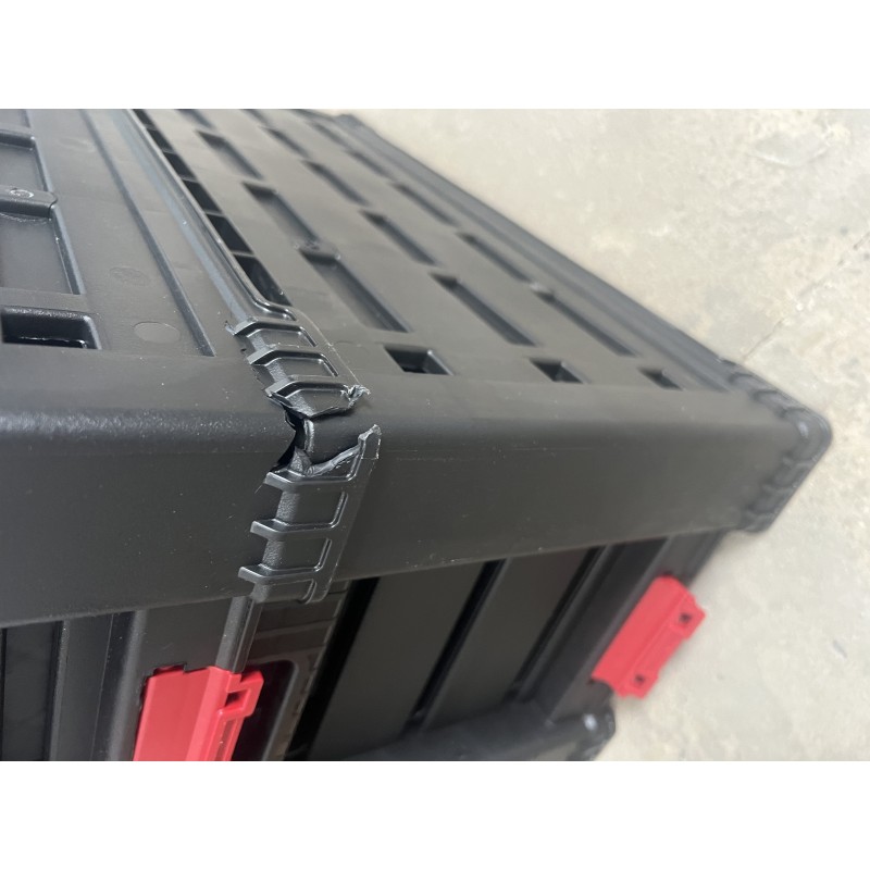 Masívne úložný box z pevného a odolného plastu s tromi zhodne veľkými zásuvkami. Jedna zásuvka je ešte rozdelená na menšie priehradky použiteľné na spojovací materiál a iné drobnosti.
