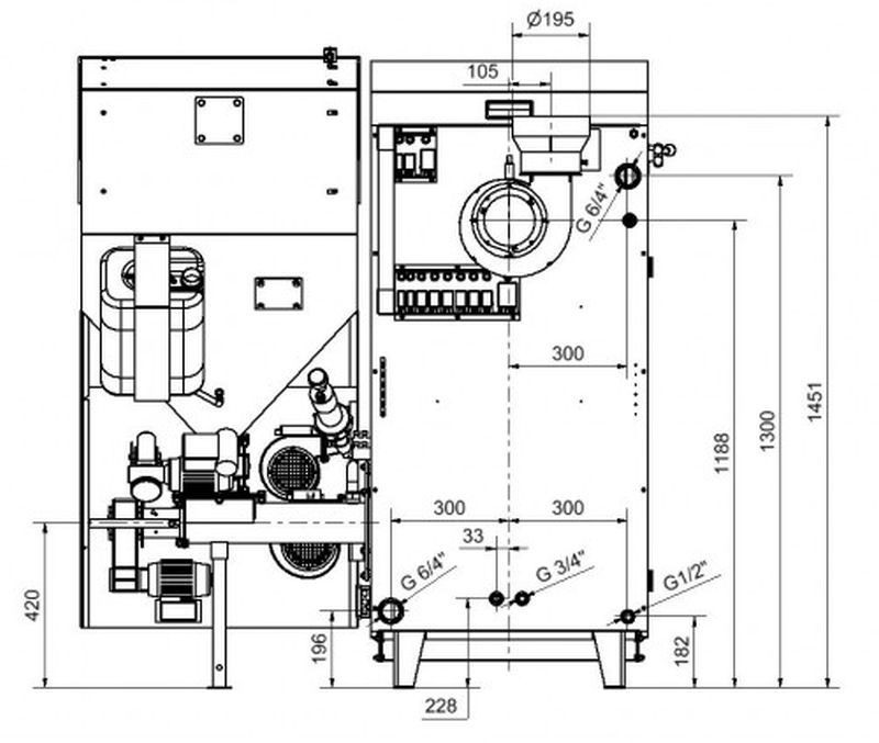 - Vo svojej základnej verzii kotol obsahuje odťahový ventilátor