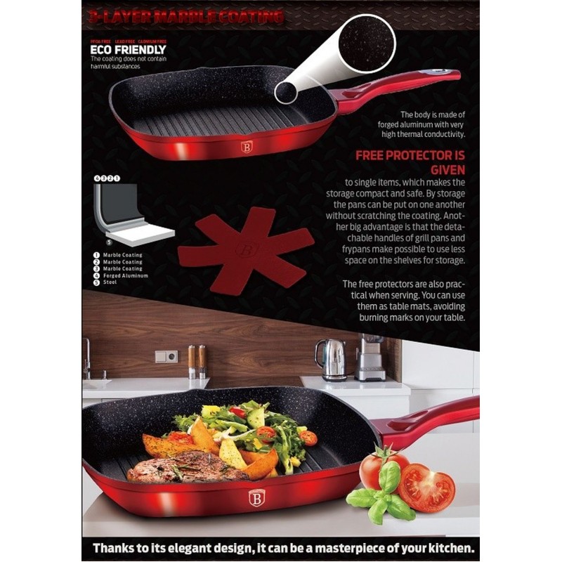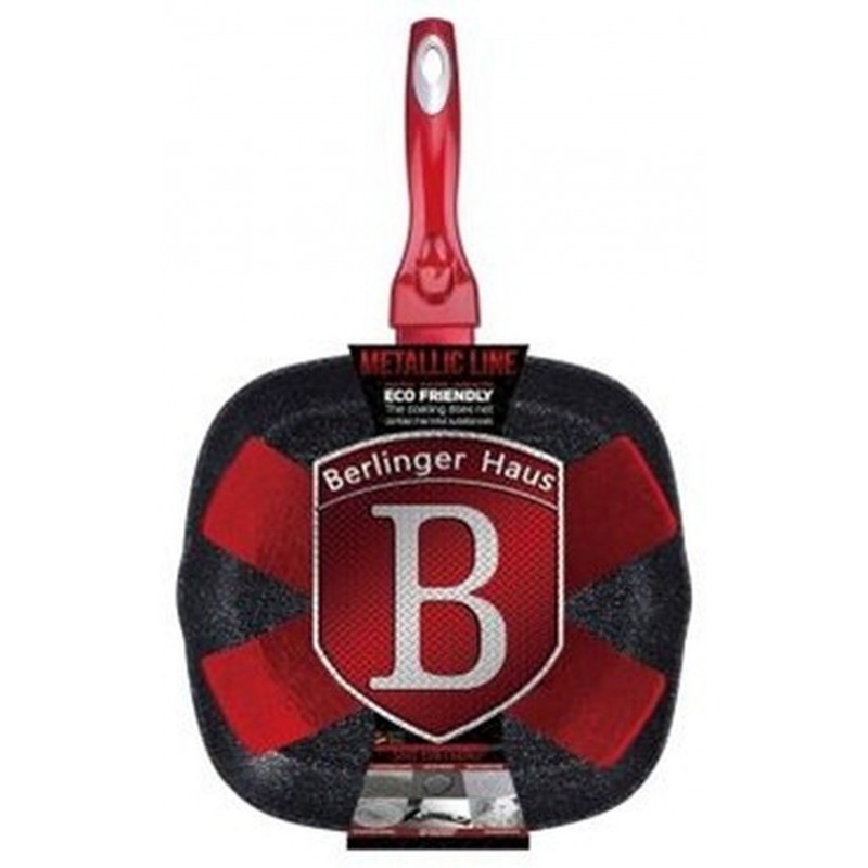 BERLINGERHAUS Burgundy Metallic Line panvica grilovacia 28 cm, červená BH-1271- Materiál: kovaný hliník s mramorovým povrchom