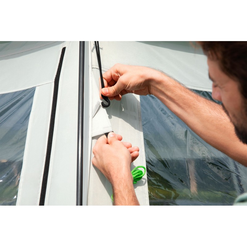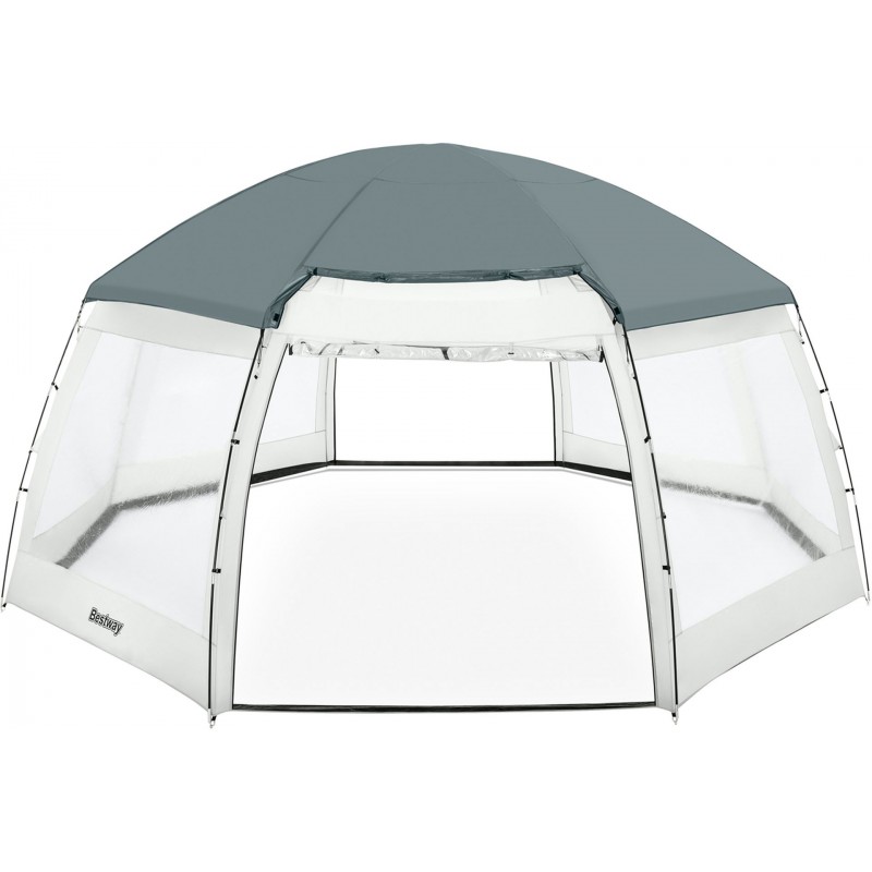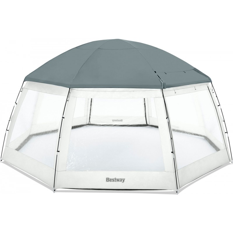 Kupola je kompatibilný s nafukovacími vírivkami a bazény až do 488 cm. Zastrešenie vám poskytne súkromie a ochranu pred dažďom, slnkom alebo inými poveternostnými vplyvmi. Prístrešok je zostavený podobne ako stan a má jedinečný dvojvrstvový dizajn, ktorý udržuje váš bazén čistý a poskytuje ochranu pred slnkom.