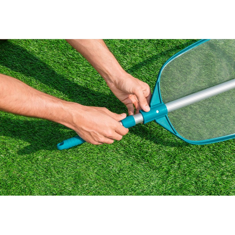 Táto sieťka Flowclear™ Skimmer AquaScoop bola špeciálne navrhnutá na optimalizované čistenie bazéna. Bazénová sieťka je dodávaná s výsuvnou teleskopickou tyčou, ktorá má dĺžku až 163 cm a je vyrobená z ľahkého a odolného hliníka. Teleskopickú tyč je možné ľahko zložiť spolu so sieťkou a uskladniť. Sieťka je odolná a bez námahy odstráni lístie, hmyz a ďalšie nečistoty z vášho bazéna. Vďaka optimálnemu tvaru ľahko vyčistíte aj rohy bazéna.