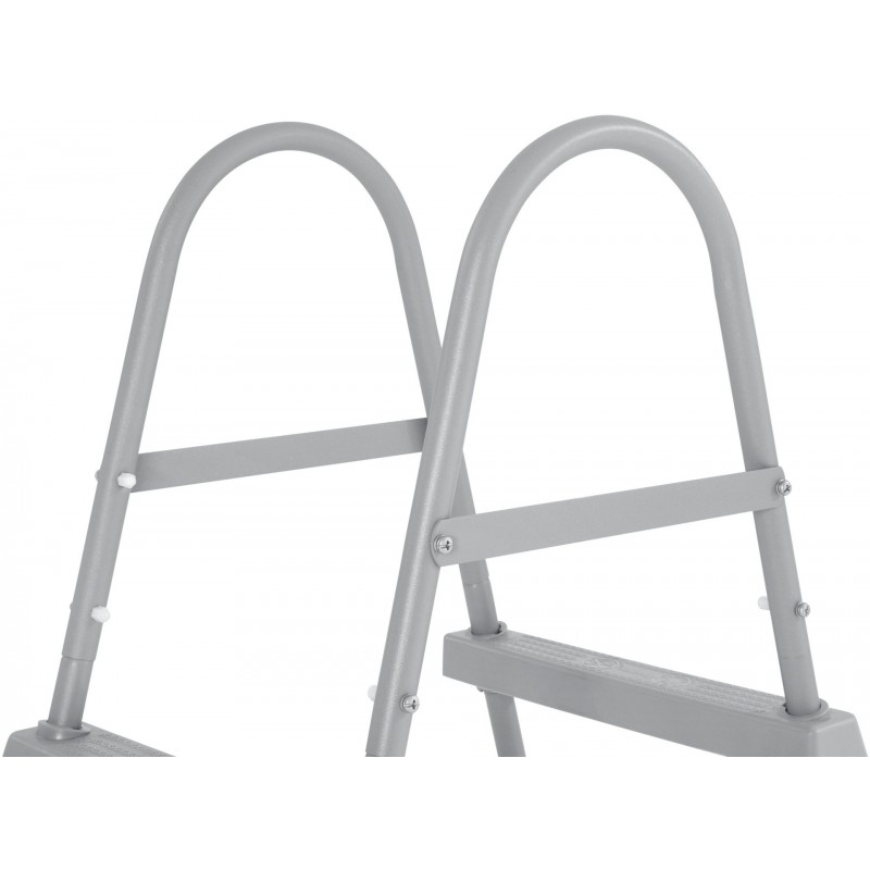 Schodíky k bazénu sú vyrobené z kvalitných kovových trubiek s plastovými stupňami. Stupne schodíkov sú ošetrené protišmykovou úpravou, takže sa nemusíte obávať nechceného pošmyknutia pri vstupe alebo pri opúšťaní bazéna.