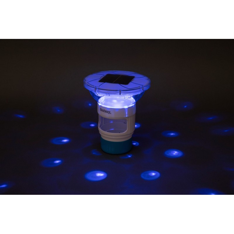 BESTWAY SolarGlow™ Dávkovací plovák ⌀ 18 × 21,5 cm je ideální kombinací jednoduché péče o bazén a okouzlujícího osvětlení, které zpříjemní Vaše letní večery a zajistí čistou a bezpečnou vodu pro celou rodinu.