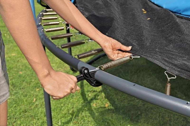 Konstrukcia z pozinkovanej ocele s vypáleným práškovým lakom poskytuje maximálnu ochranu proti hrdzi a korózii. Materiály odolné proti UV žiareniu zabezpečujú stálosť farby a tvaru aj pri dlhodobom vystavení slnku. Prišitá ochranná sieť bez medzier so vstupom na zips v tvare L s prackami zvyšuje bezpečnosť pri používaní. O výborný odraz a dynamiku skoku sa stará 70 galvanizovaných pružín.