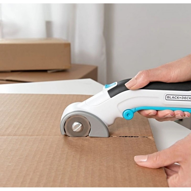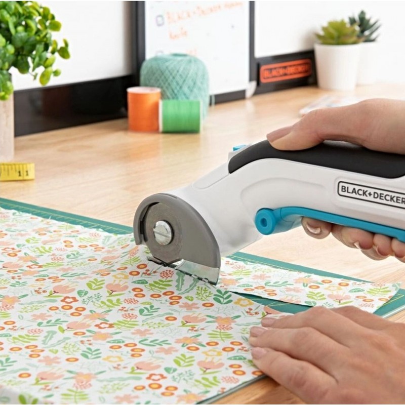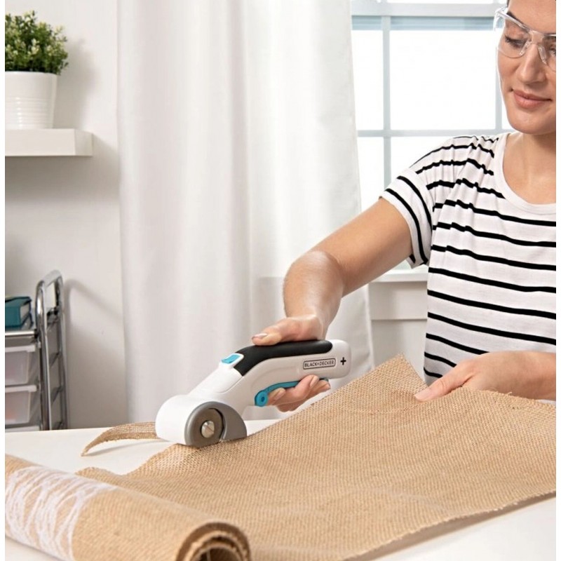 Akumulátorové rotačné nožnice BLACK+DECKER, ktoré pracujú s napätím 3,6 V, sú určené na strihanie najrôznejších druhov materiálov, vrátane papiera, lepenky, kože, plastov, kobercov, džínsoviny a ďalších tkanín.