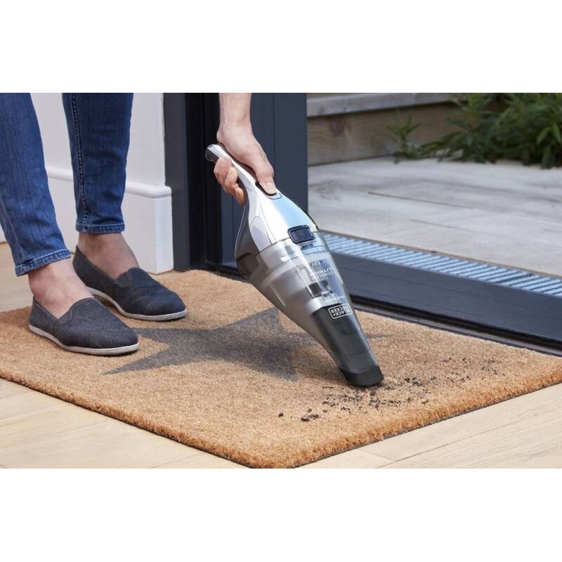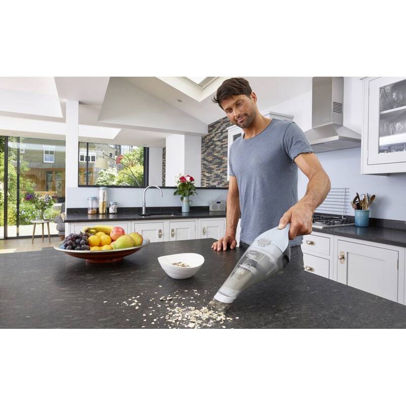 Black&Decker NVC215WA je ručný vysávač, ktorý si hravo poradí s každou nedokonalosťou vo vašom domove. Funguje bezdrôtovo, na jedno nabitie zvládne pracovať cca 10 minút. Z nuly na sto percent ho nabijete pomocou dodávanej nabíjacej základne približne za jedenásť hodín. Základňu je možné umiestniť na stôl, alebo ju môžete upevniť na stenu a ušetriť tak miesto v malom priestore. Vysávač sa hodí na upratovanie suchých nečistôt.
