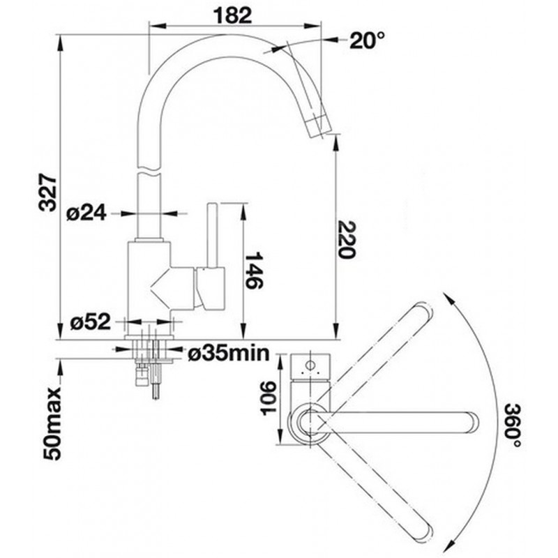 - Rozšírený akčný rádius: o 360 ° otáčitelný odtok