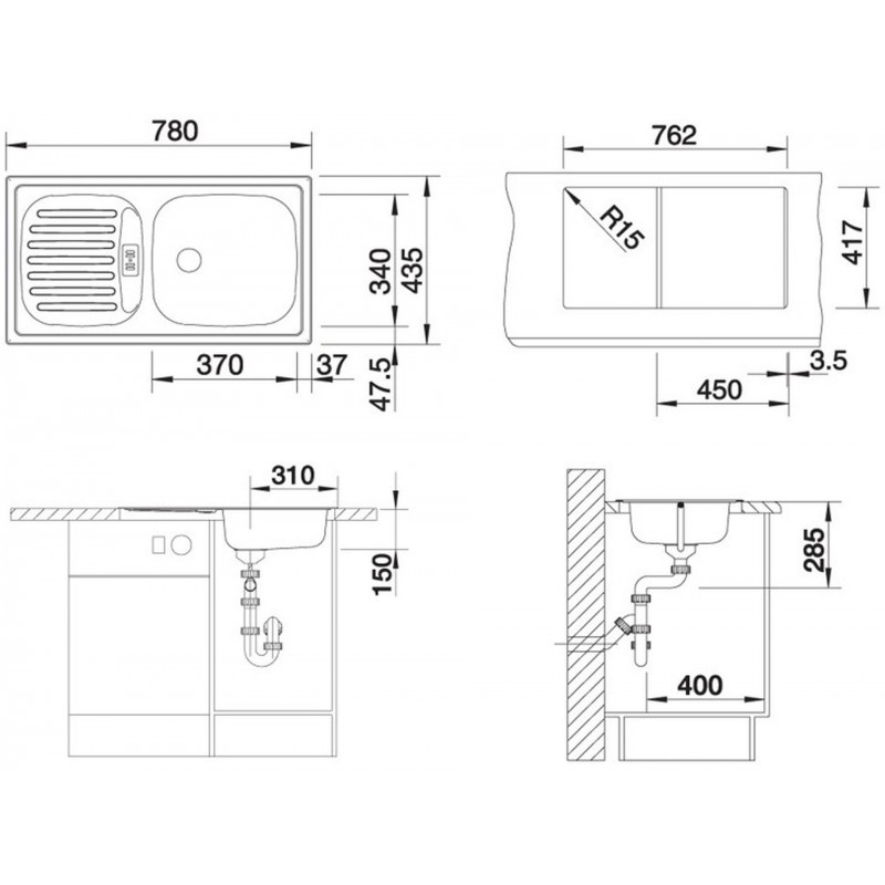BLANCO set FLEX mini profilovaný nerez 780 x 435 mm + MIDA-S batéria chrómBLANCO Flex mini drez nerezový, vrátane sifónu, profilovaný nerez 512032: