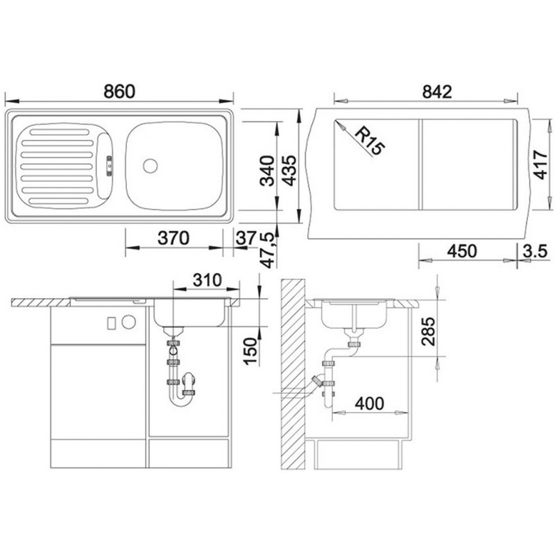 BLANCO set FLEX prírodný nerez 860 x 435 mm + Daras-S batéria chrómBLANCO Flex drez nerezový, vrátane sifónu, prírodná nerez 511917:
