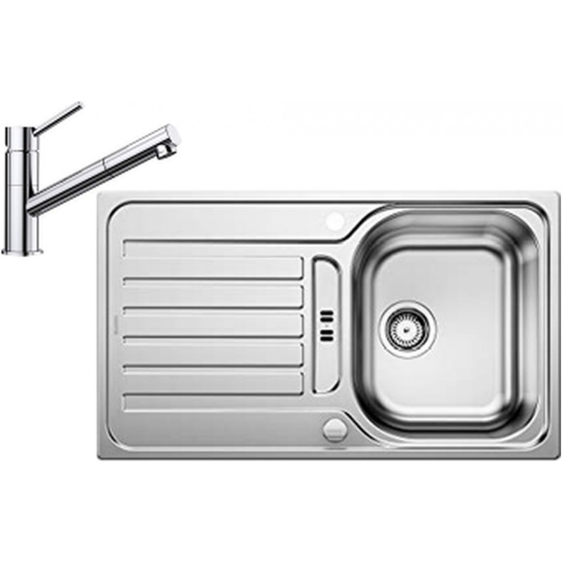 BLANCO set LANTOS 45 S nerez kartáčovaný s excentrom 860 x 500 mm 514008 + KANO-S batéria chróm 521503BLANCO Lantos 45 S drez nerezový s excentrom, vrátane sifónu, hodvábny lesk 514008:
