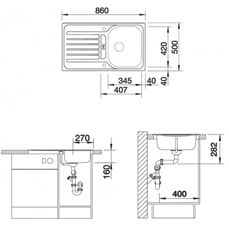 - Rozmer drezu: 860 x 500 mm