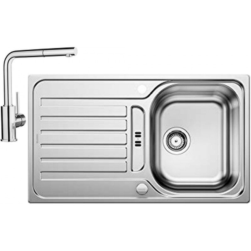 BLANCO set LANTOS 45 S nerez kartáčovaný s excentrom 860 x 500 mm 514008 + MILA-S batéria chróm 519810BLANCO Lantos 45 S drez nerezový s excentrom, vrátane sifónu, hodvábny lesk 514008: