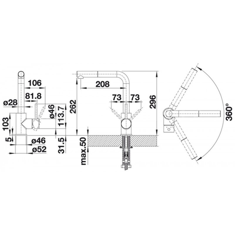 - Rozšírený akčný rádius: o 360 ° otáčavý odtok