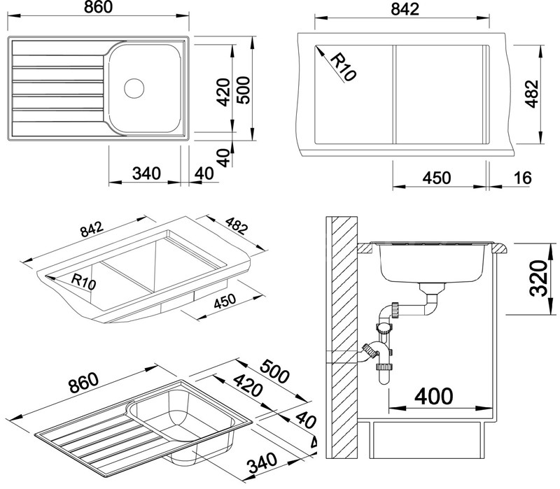 BLANCO set LIVIT 45 S Salto nerez kartáčovaný 860 x 500 mm 514786 + TIVO-S batéria chróm 517648BLANCO Livit 45 S Salto drez vrátane sifónu, leštený nerez 514786: