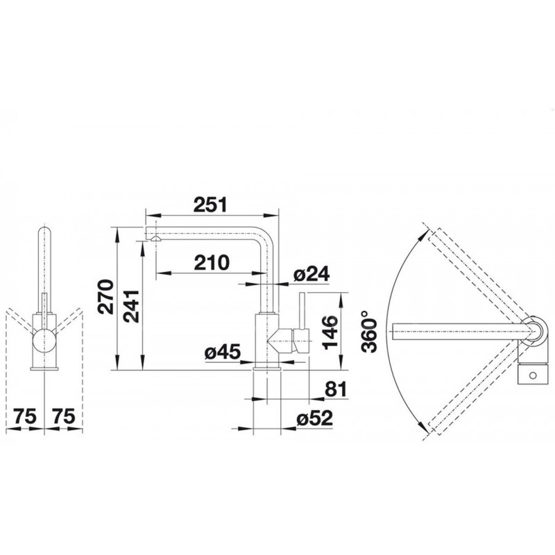 - Rozšírený akčný rádius: o 360 ° otáčavý odtok