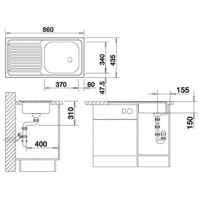 BLANCO set TOP EES drez nerez 860 x 435 mm + MILA batéria chróm