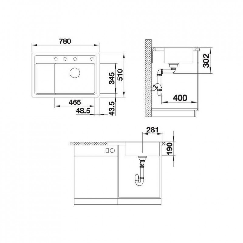 BLANCO ZENAR XL 6 S Compact InFino SILGRANIT sivá skala drez vpravo s exc. a skl.deskou 5