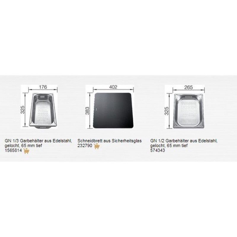 Krájacia sklenená doska, GN 1/3 dierovaná nerezová gastronádoba, GN 1/2 dierovaná nerezová gastronádoba, odtoková armatúra s priestorovo úspornú trubkou, 3 1/2 'InFino® ventil, excentrické ovládanie výpuste
