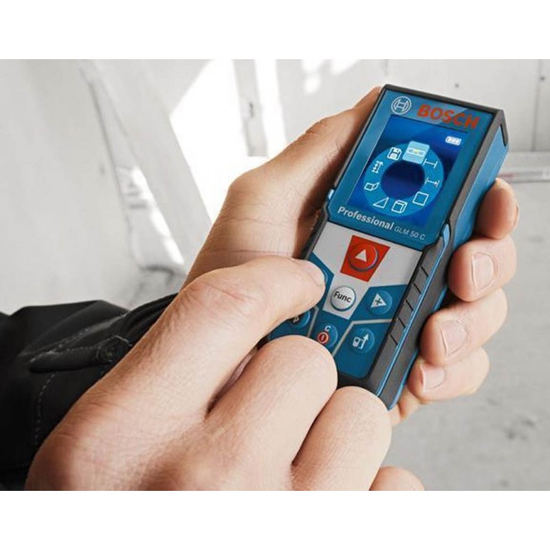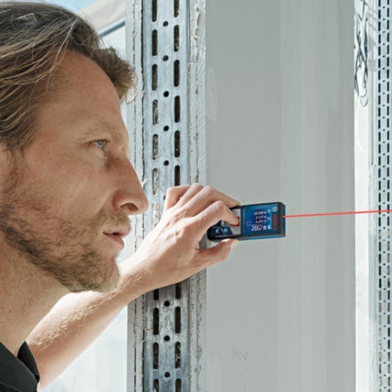 Laserový merač vzdialenosti s uhlomerom Bosch GLM 500, farebný displej. Akčný model zhodný s verziou GLM 50 iba bez možností odosielania hodnôt cez Bluetooth.- ukladanie nameraných hodnôt do pamäti