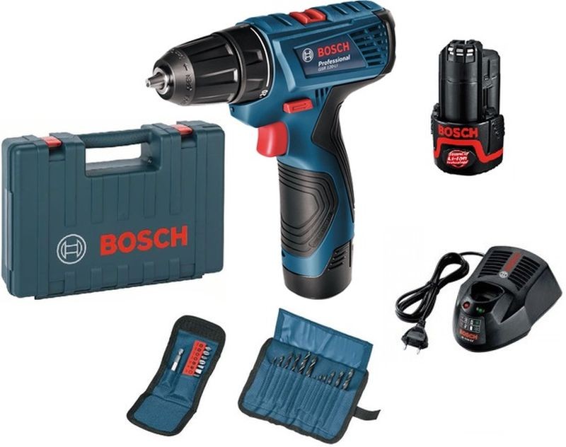 Profesionálna sada: GSR 120-LI (2 × 1,5 Ah) + 11 dielna sada bitov + 12dielna sada vrtákov v kufríku.Kvalita Bosch, Vysoký Výkon, dostupná cena!
