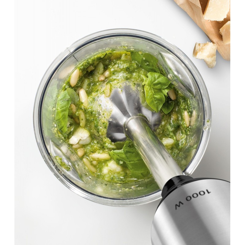 • Zvládnete miešanie, sekanie, krájanie či miesenie, vďaka neuveriteľne výkonnému 1000 W motoru a širokému príslušenstvu.