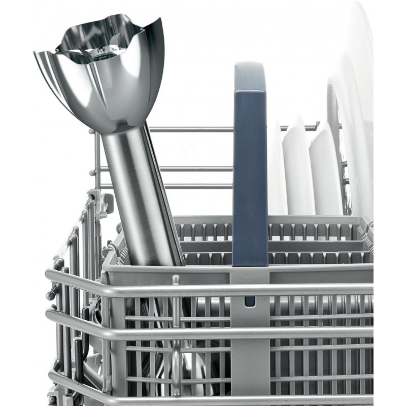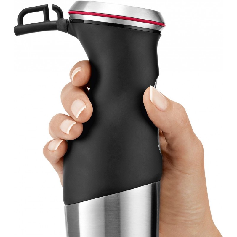 • Plášť spotrebiča z nehrdzavejúcej ocele s mäkčenou protisklzovou rukoväťou a ergonomickým tvarom poskytuje maximálne pohodlie a bezpečnosť aj pri mixovaní na najvyššej rýchlosti.