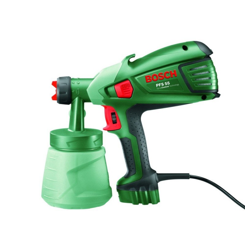 BOSCH PFS 55 striekacia pištoľ 0.603.206.000So striekacou pištoľou Bosch PFS 55 budete s natieraním končiť až trikrát rýchlejšie ako s bežným štetcom. Tiež spotrebuje až o 15% menej farby vďaka technológii SprayControl pre jemné nanášanie farby s malým množstvom farebnej hmly. Dosiahnete tak fantastických výsledkov bez kvapiek, mokra a bez dlhej prípravy.
