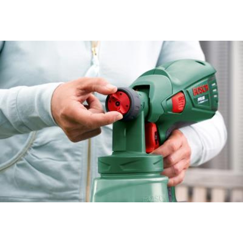 Množstvo farby si sami určujete integrovanou plynulou reguláciou, môžete si tiež vybrať nastavenie striekacieho lúča. Možno ho nastaviť do zvislej, vodorovnej alebo polohy pre bodové striekanie. Rozstrek nie je veľký, preto sa zaobídete bez veľkého oblepovanie okolitého priestoru. Čistiaci systém Bosch-SDS zaručí jednoduchú údržbu a následnú výmenu farby. Striekacou pištoľou môžete nanášať nielen farbu, ale aj lazúry, laky, oleje a mnohé ďalšie nátery určené na striekanie. Je určená ako pre domácich majstrov, tak aj pre profesionálov.