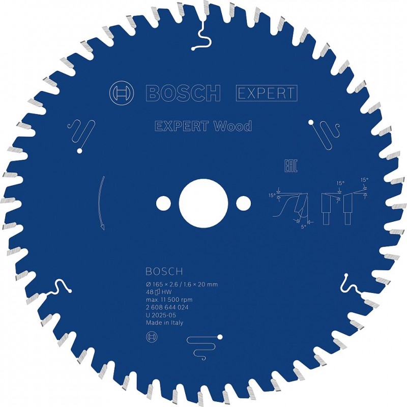 BOSCH Pílový kotúč Expert for Wood, 165 × 2,6/1,6 × 20 mm, T48 2608644024