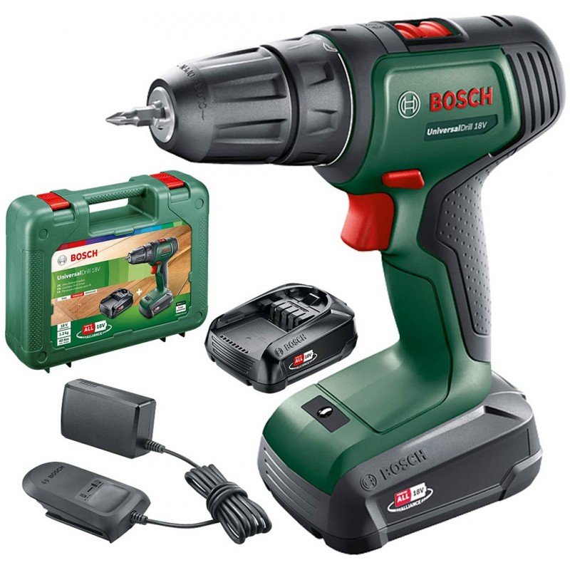 BOSCH UniversalDrill 18V Aku dvojrýchlostný vŕtací skrutkovač, 2x1,5Ah 06039D4002