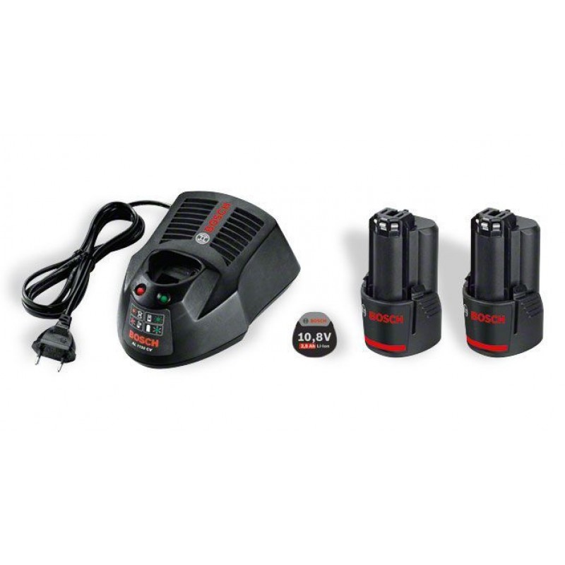 BOSCH Základný súprava 2 x GBA 10,8 V 2,5 Ah OB + AL 1130 CV Professional2x akumulátor 10,8 V s 2,5 Ah a rýchlonabíjačka