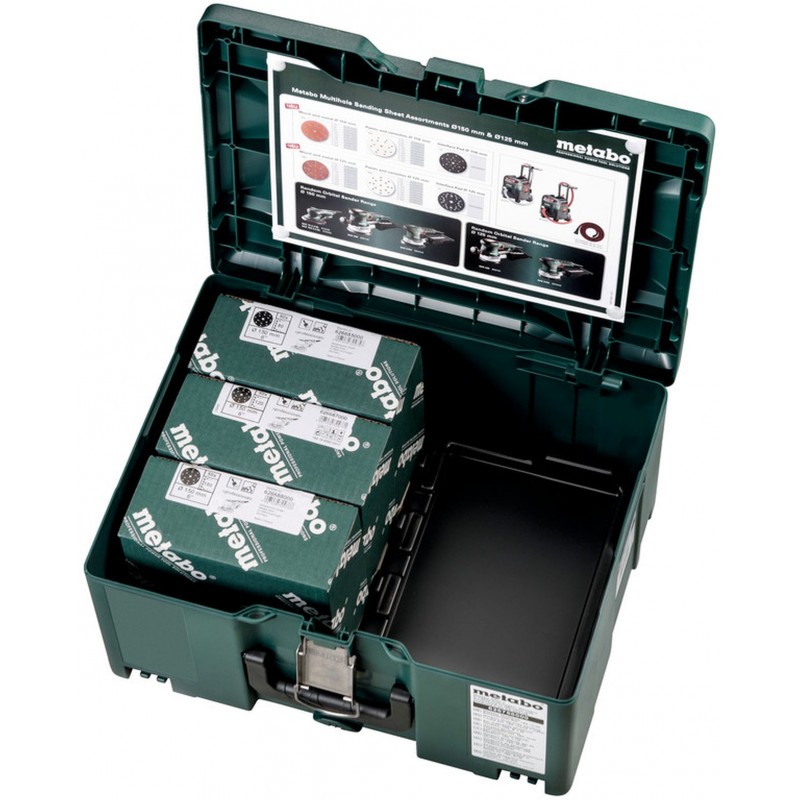 Metabo 626756000 – metaBOX sada brúsnych prostriedkov 150 mm multi-hole (Professional) na drevo a kov