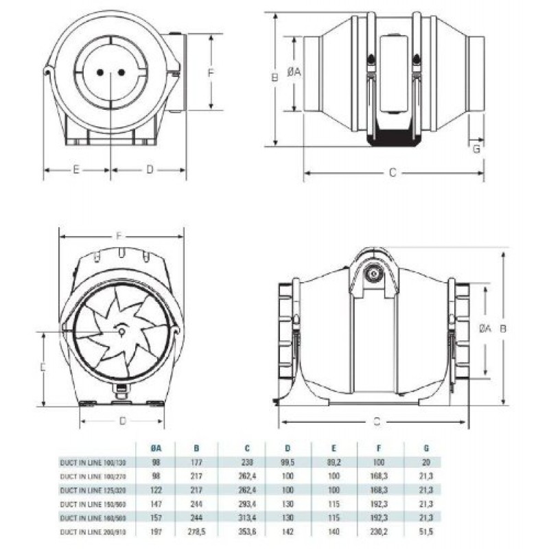 CATA DUCT IN-LINE 100/130 T potrubný ventilátor radiálne 00771000Potrubný ventilátor radiálne, priemer. 100 mm, 130 m3 / h, 14 dB (A), 14 mmH2O (137 Pa), IPX4, doběhová časovač.