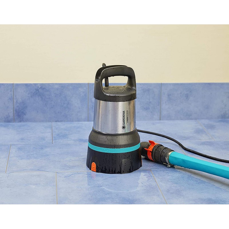 Čerpadlo pre čistú vodu 17000 AquaSensor značky GARDENA, predné značky pre vysoko kvalitné a moderné záhradné náradie v Európe s viac ako 40-ročnými skúsenosťami v oblasti odvodňovanie, zavlažovanie a zásobovanie domácnosti vodou. Pocíťte silu čerpadiel GARDENA s týmto extrémne výkonným a efektívnym ponorným čerpadlom s radom inovatívnych funkcií. Máte zaplavovaný pivnica z dôvodu presakujúcej podzemnej vody alebo vytečenej práčky? Musíte pred zimou vyčerpať dažďovú vodu zo sudov? Hľadáte účinné odvodňovacie čerpadlo pre vypúšťanie bazéna? V týchto konkrétnych prípadoch alebo v mnohých ďalších možných scenároch sa toto energeticky úsporné a obzvlášť výkonné čerpadlo osvedčí ako zásadný doplnok do vašej sady prístrojov pre domácnosť a záhradu. Čerpadlo na čistú vodu 17000 AquaSensor má výkon 750 W a vyčerpá až 17 000 litrov čistej alebo mierne znečistenej vody za hodinu pri tlaku 0,9 bar a maximálny dopravnej výške až 9 m. S plošným nasávaním do púheho 1 mm zostane vaša podlaha takmer suchá, zvyškovú vodu stačí iba zotrieť handrou. Jedná sa skutočne o vysoko výkonné čerpadlo s nízkou spotrebou energie. To, vďaka čomu GARDENA čerpadlo na čistú vodu 17000 AquaSensor vyniká oproti bežným ponorným čerpadlám na čistú vodu, sú moderné a inovatívne funkcie, ktoré poskytuje digitálny LED AquaSensor. Táto inovácia umožňuje použitie v úzkych priestoroch a výšku zapnutie a vypnutie čerpadla je možné presne nastaviť pomocou dotykového ovládania. Napríklad môže začať automaticky plynúť od hladiny vody iba 5 mm - ideálne pre ochranu pivníc pred povodňami. Aquasensor meria aktuálnu hladinu vody bez priameho kontaktu a zobrazuje hodnotu pomocou ľahko čitateľných LED. Nechýba ani užitočná funkcia časovača a intuitívne dotykové ovládanie. Aquasensor eliminuje riziko chodu čerpadla nasucho a chráni ho tým pred možným poškodením. To, čo na vás zapôsobí, nie je iba vnútorné fungovanie a vlastné ochranné technológie GARDENA čerpadlá pre čistú vodu 17000 AquaSensor. Vonkajší plášť je špičkový z hľadiska odolnosti a dizajnu. Plášť z nerezovej ocele nielen dobre vyzerá, ale tiež účinne chráni čerpadlo pred vonkajším poškodením. Hriadeľ motora má pre ešte väčšiu odolnosť keramický povlak s trojitým tesnením vrátane olejovej komory. Okrem toho má ponorné čerpadlo rovnako užitočnú zabudovanú funkciu pre maximálny prietok alebo zastavenie pred chodom nasucho. Ľahko použiteľné pätky pre zvýšenie prietoku môžu čerpadlo zdvihnúť, ak nie je nutné plošné sania pre zvýšenie výkonu čerpadla. Samozrejme možno k čerpadlu vďaka novému jednoduchému systému pripojenie hadíc GARDENA pripojiť hadice rôznych veľkostí. Tým sa stáva použitie tohto čerpadla ešte všestrannejšie a jednoduchšie. Čerpadlo pre čistú vodu 17000 s inovatívnym AquaSensor značky GARDENA je funkčné, intuitívne a ľahko ovládateľné.
