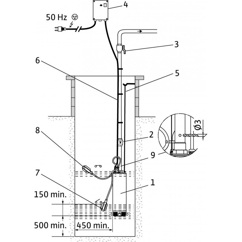 • prevedenie FS = s integrovaným plavákovým spínačomPlne zaplaviteľné, viacstupňové, samoodvětrávací, podvodné, motorové čerpadlo so štandardným nasávacím košom k ponorné inštaláciu nad dnom nádrže / cisterny.
