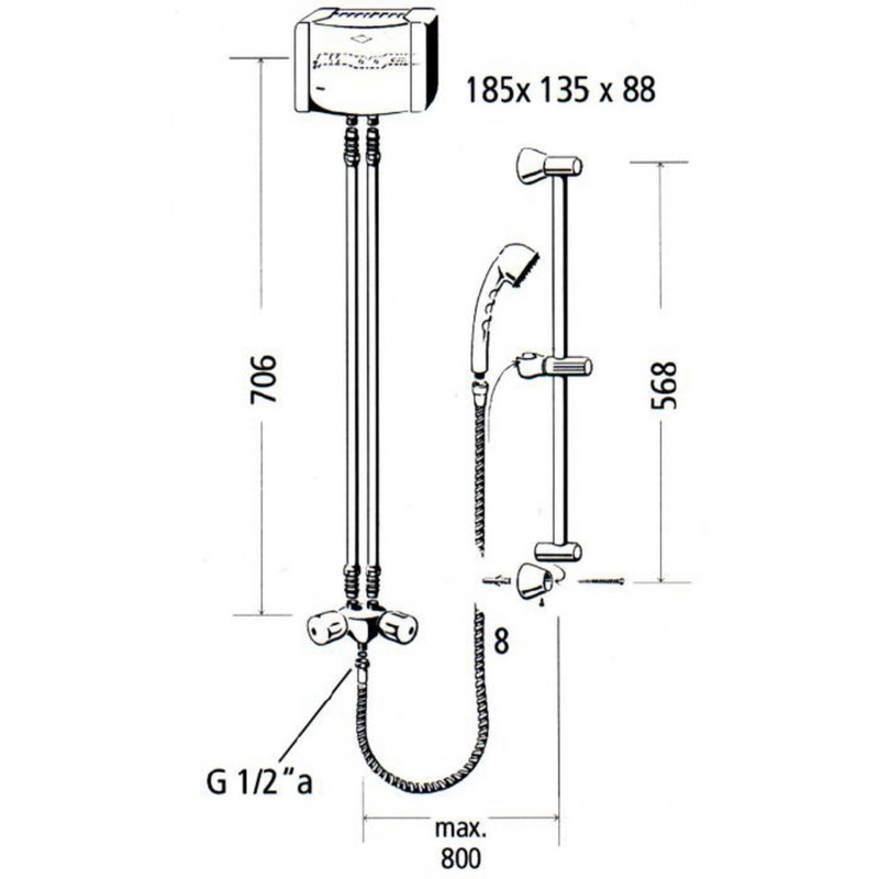 Dosahovaná teplota v rozmedzí 35°- 45 °C je plne dostačujúca pre príjemné osprchovanie. Voda pritekajúca do armatúry je bezprostredne ohrievaná pri prietoku ohrievačom tak, že nedochádza k stratám tepla v potrubí. Odberateľ používa také množstvo teplej vody, aké práve potrebuje. Sprcha je dodávaná spoločne so sprchovou sadou a nástenným držiakom. Špeciálna kropítko zaisťuje bohatý a pritom hospodárny prúd vody pri cca 4 l / min• malý prietokový ohrievač so špeciálnou sprchovací armatúrou (otvorená inštalácia) so sprchovou sadou a nástenným držiakom