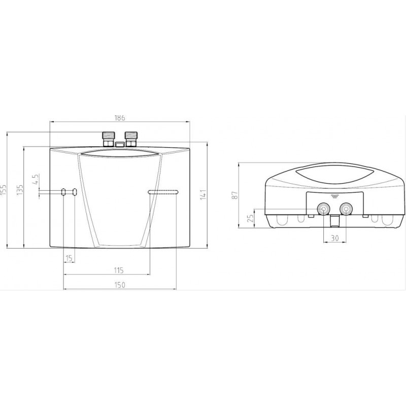 Voda sa ohrieva priamo pri prietoku bez zásobníka a bez pohotovostných strát. Automatické zapnutie plného vykurovacieho výkonu prebieha pri otvorení vodovodnej batérie. Inštalácia pod umývadlom minimalizuje tepelné straty v potrubí a znižuje spotrebu energie.