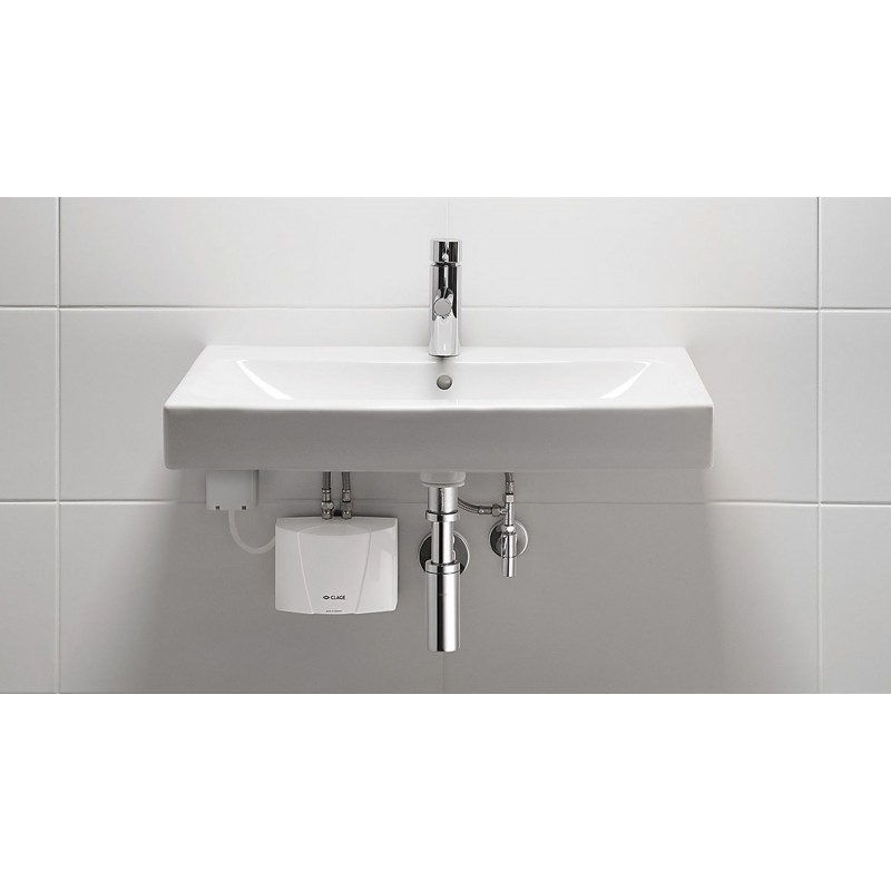 CLAGE MBH 7 je hydraulicky riadený malý prietokový ohrievač vody určený na energeticky úspornú prípravu teplej vody priamo pri umývadle alebo dreze. Ohrievač pracuje pri tlakovej inštalácii s bežnými armatúrami.