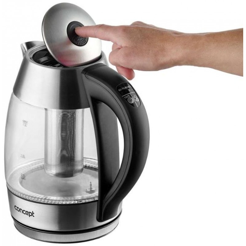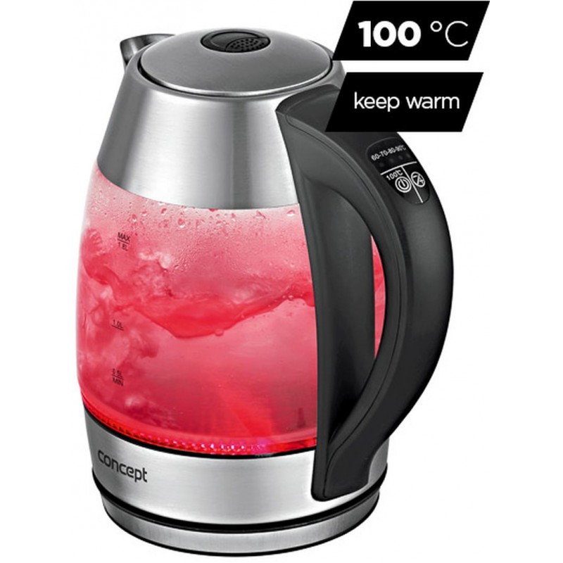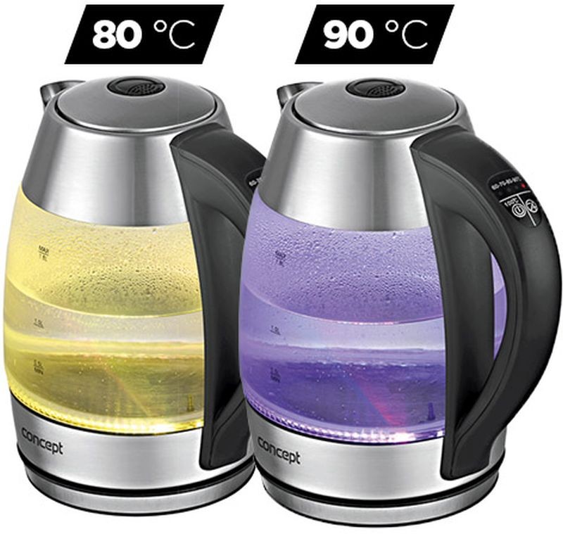 CONCEPT RK4066 Sklenená rýchlovarná kanvica 1,8l, nerez / sklo rk4066Sklenená rýchlovarná kanvica RK4066 s objemom 1,8 l s voľbou nastavenia teplôt od 60 ° C do 100 ° C, farebným podsvietením a sitkom na čaj.