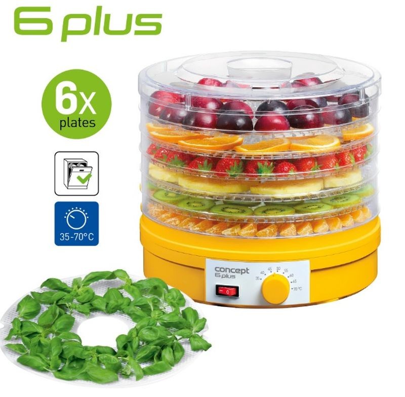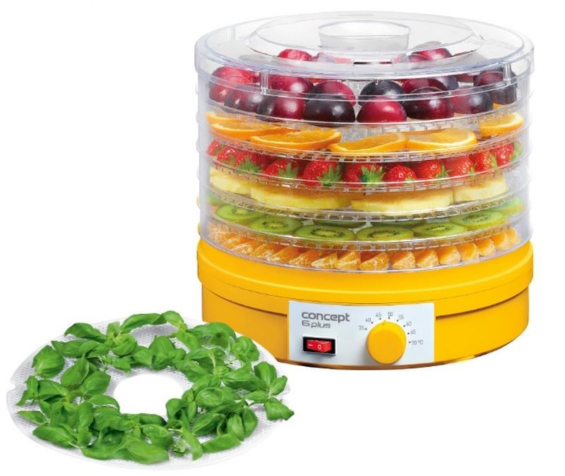 CONCEPT SO1015 Sušička ovocia + plato na bylinky so1015lGuľatá sušička ovocia Concept SO1015 6+ je vybavená 6ti sitami a platom na bylinky.