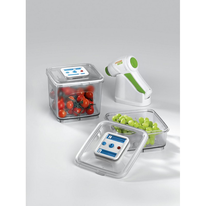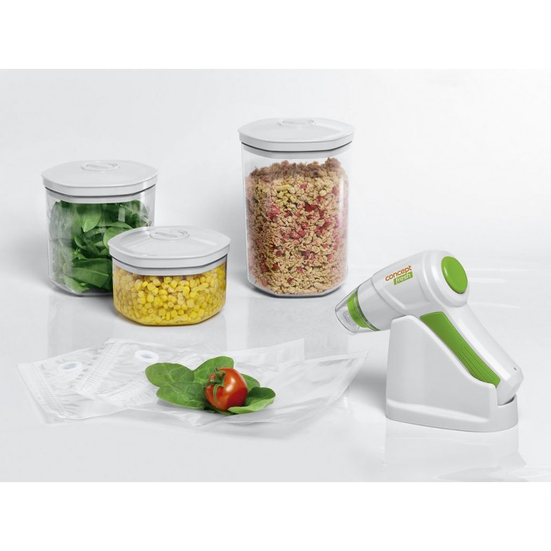 Ručné akumulátorová vakuovačkou Concept Fresh je určená na uskladnenie potravín v domácnosti. Používa sa so špeciálnymi zips sáčky s ventilčekom, vákuovacím dózami alebo vákuovacím zátkami na fľaše.