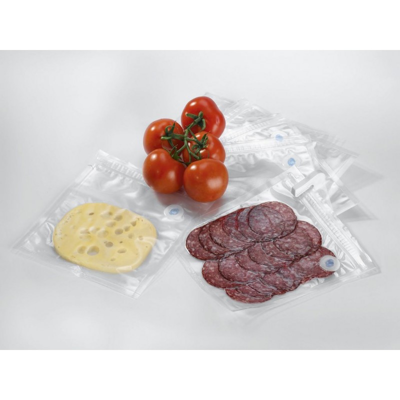 Použitie iba s originálnymi zip sáčky (v ponuke dva rozmery) alebo s vákuovacím dózami a zátkami. Sáčky možno používať opakovane. Zmrazené potraviny sa môžu v týchto vreckách variť vo vode a rozmrazovať či ohrievať v mikrovlnnej rúre.