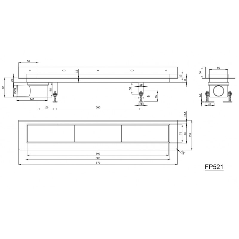 CORNER 87 nerezový kanálik s roštom pre obklad, k stene 870x130mmSprchové kanáliky nám odvádzajú vodu z podlahových plôch sprchovacích kútov.