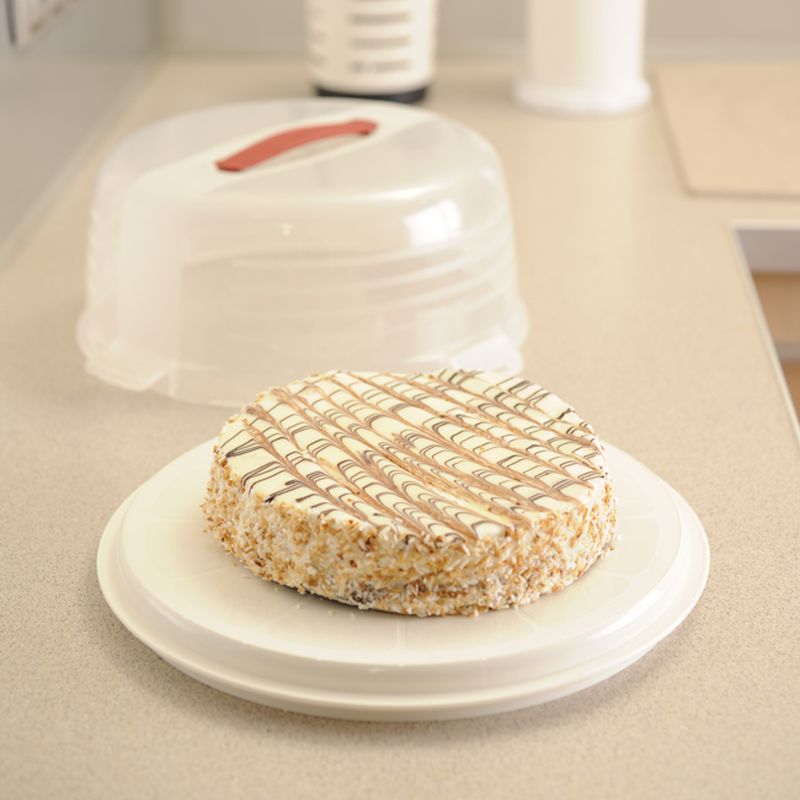 CURVER CAKE BOX ROUND s poklopom 34,7 x 15,2 cm červený 00416-472Praktický tortový podnos od značky Curver s poklopom. Podnos je okrúhleho tvaru a pre bezpečné uzatvorenie má Zacvakávacie pracky. Pre jednoduchú manipuláciu je na poklope pružný úchyt.